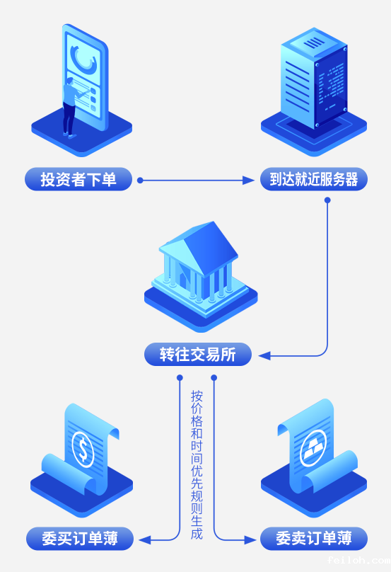 在介绍价格撮合之前,先简单介绍下,投资者委托的订单的流转过程。首先,投资者通过交易软件获取行情信息并进行下单,订单经过网络到达服务商就近的服务器,再经服务商的内部网络转往交易所,交易所在各服务商之间进行轮询获取订单信息。所以,交易订单要在交易所靠前,首先在服务商的排队就得靠前,之后就要看交易所轮询的运气了。当然,通过多个服务商同时报单也是一个不错的想法。当订单到达交易所后,交易所按价格优先和时间优先的规则生成“委买订单薄”和“委卖订单薄”。