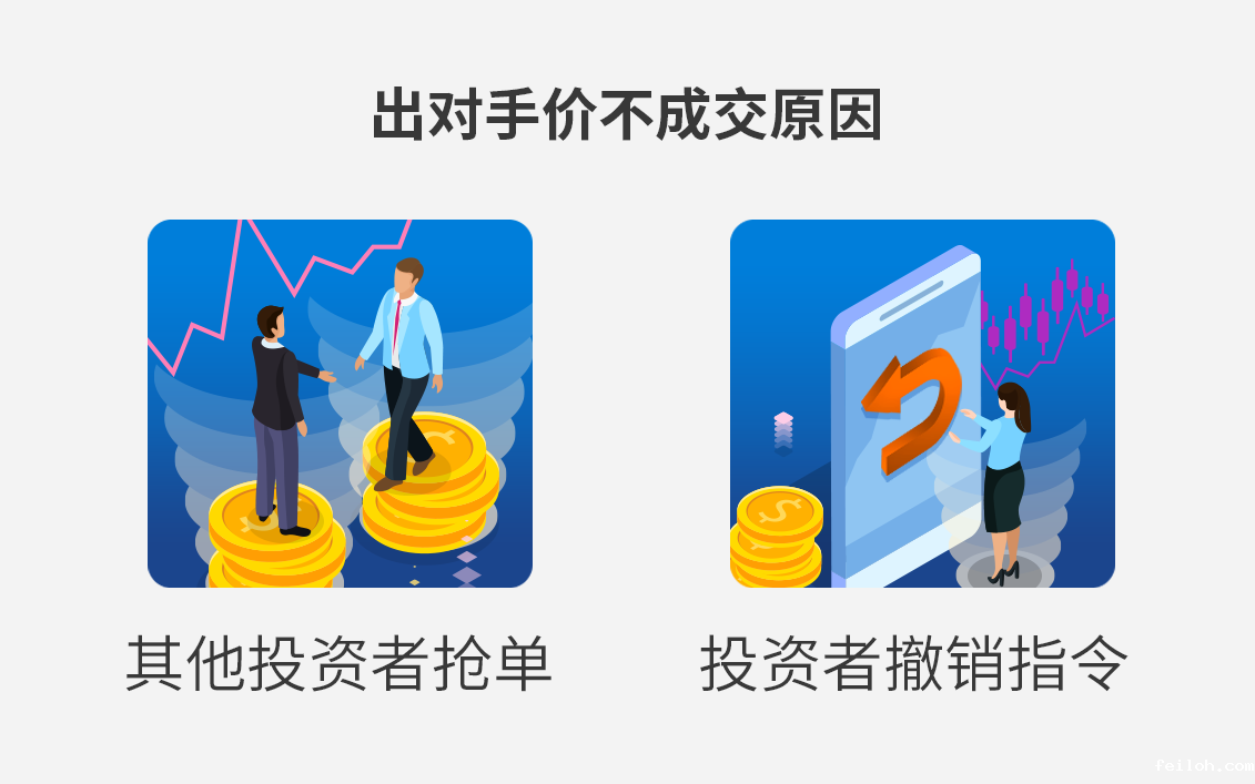 但投资者也会经常遇到出对手价也没成交的情形。我们观察到的对手价,是交易所系统中未成交的委托。考虑到市场环境瞬息万变,当我们按对手价发出的交易指令时,经过信息传递到达交易所时,有可能因为时差关系导致原本的对手价委托已经不复存在,这时委托就不会立刻成交而成为挂单继续排队。而消失的对手价,可能是被其他投资者抢先买走,也可能是投资者撤消了指令。