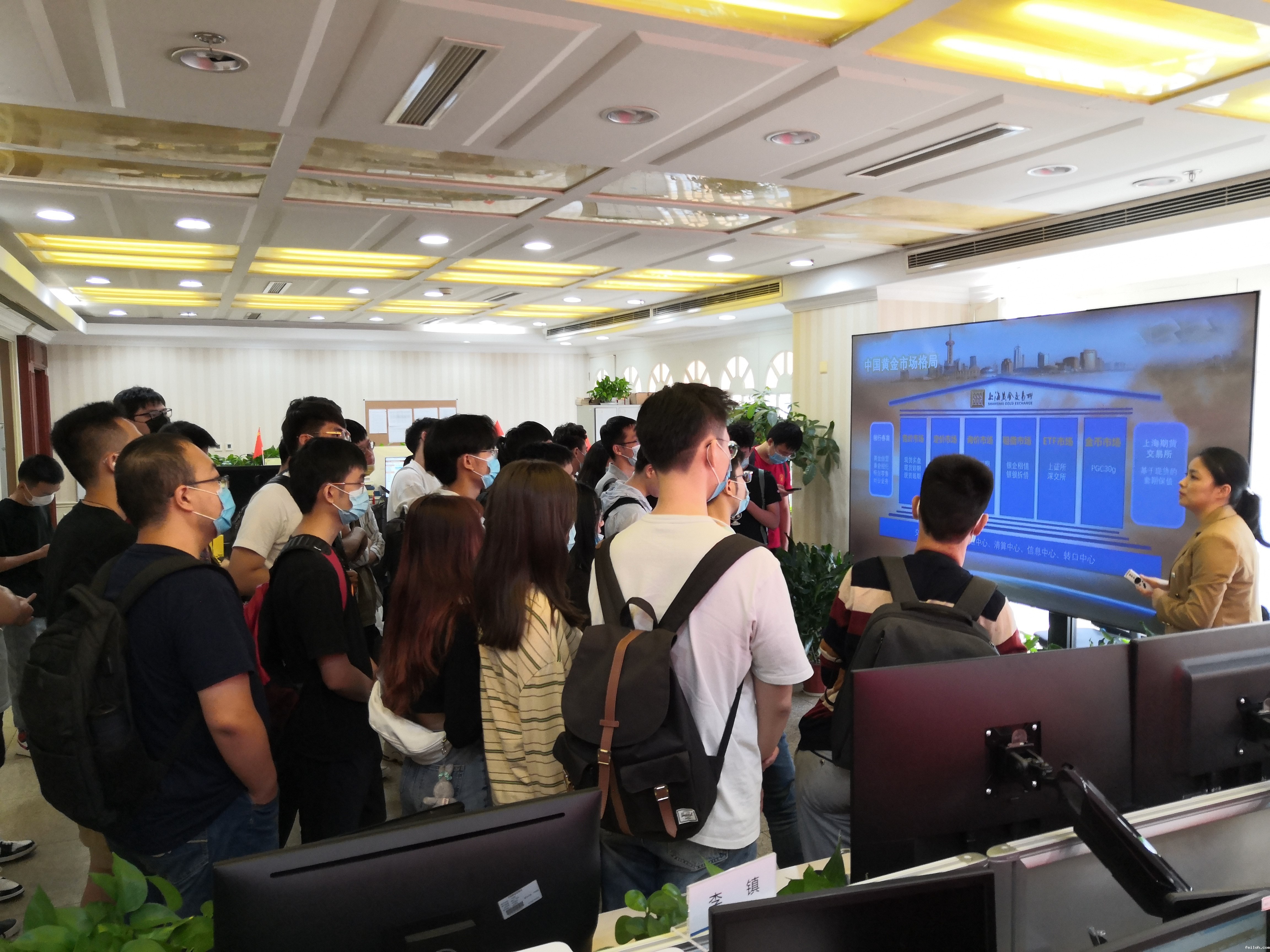 在参观交易大厅的过程中,交易中心专家向大家介绍了优米网官方下载苹果版app的整体发展概况、重点产品和业务体系,解读了国内外黄金市场的特点,展望了黄金市场未来发展前景。